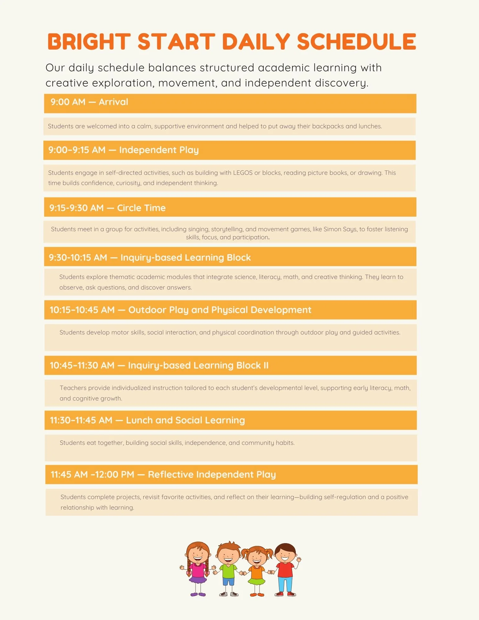Each day at Bright Start helps students develop curiosity, independence, and a love of learning—building the foundation for future academic success and lifelong growth.